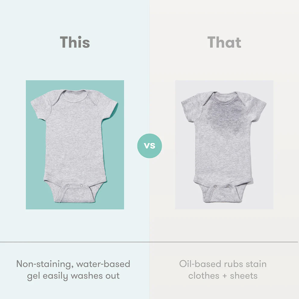 •NO STAINS: Petroleum-free formula easily washes out and won't stain clothes or sheets.